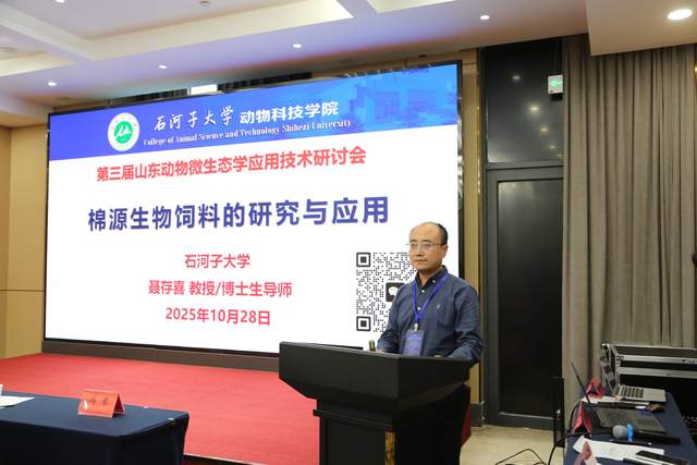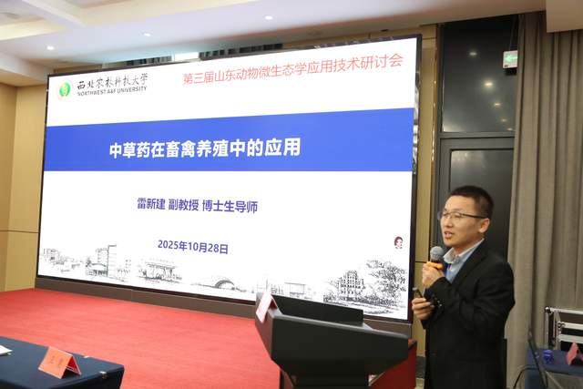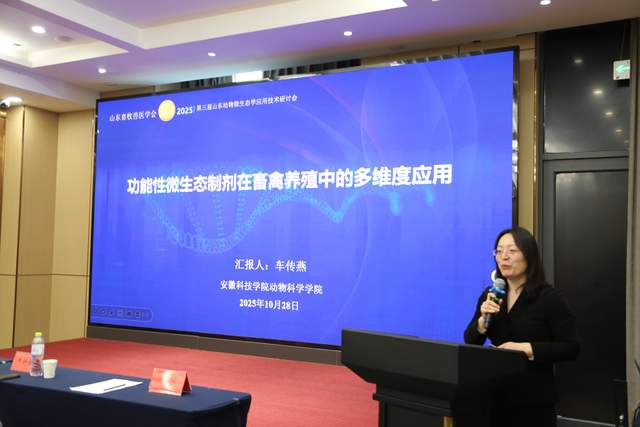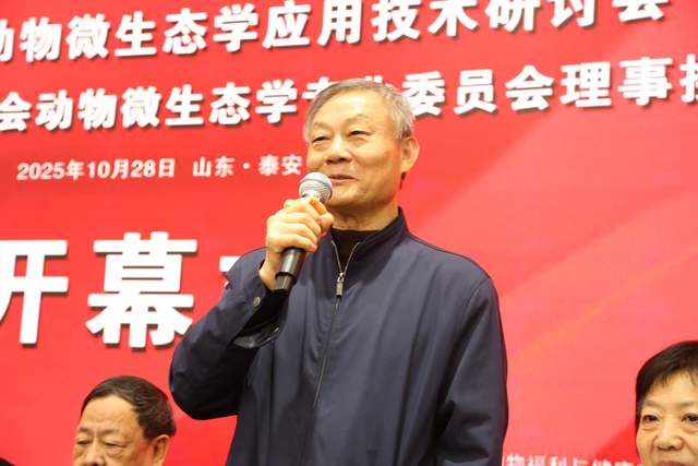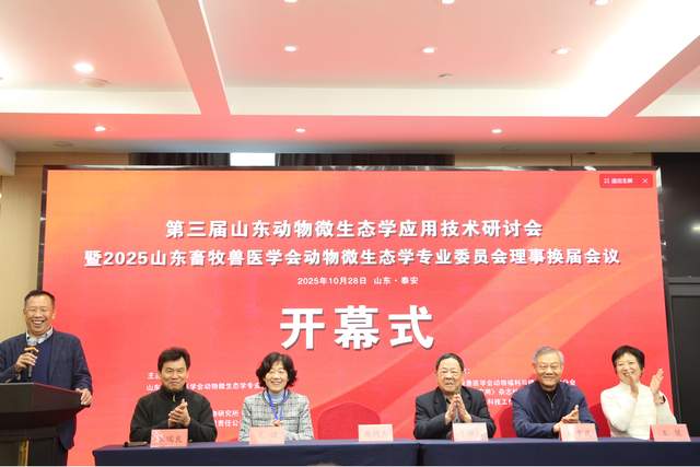 10 月28日,第三届山东动物微生态学应用技术研讨会暨2025山东畜牧兽医学会动物微生态学专业委员会理事换届会议在山东泰安圆满召开。本次会议由山东畜牧兽医学会动物微生态学专业委员会主办,泰安市泰山区中科生物研究所和山东傲华文化传媒有限责任公司承办,得到了中国畜牧兽医学会动物福利与健康养殖学分会、《饲料科技与应用》杂志社、山东农业大学老科技工作者协会、泰山科技大市场、济南市饲料协会的鼎力支持,来自省内外动物微生态产业链上下游企业、行业专家、学者及相关机构代表近100人齐聚一堂,共同探讨动物微生态产业的创新发展之路。