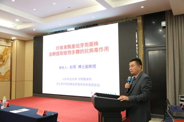 山东农业大学副教授彭军作《纤维素酶重组芽孢菌株发酵提取植物多糖的抗病毒作用》