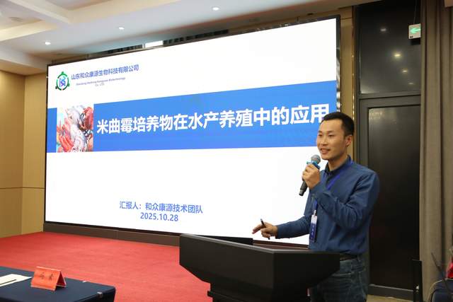 山东合众康源生物科技有限公司销售总监娄树军作《米曲霉培养物在水产养殖中的应用》