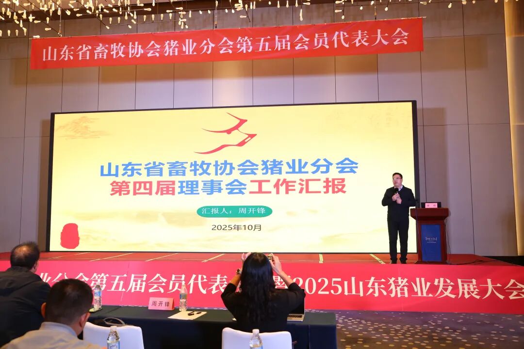 2025年10月29日,山东省畜牧协会猪业分会第五届会员代表大会在济南顺利召开。本次会议由山东省畜牧协会秘书长逯岩主持,山东省畜牧兽医局总畜牧师徐秋团出席会议并做讲话。大会选举山东环山、山东禾邦、青岛嘉大等70余家生猪养殖企业及服务企业,共同组成猪业分会第五届理事会。会议选举山东农业大学刘思当教授担任山东省畜牧协会猪业分会第五届理事会会长,侯明权当选第五届理事会秘书长。山东省畜牧协会猪业分会第五届成员以及省内外养猪行业企业家、专家、生猪相关人员等共计200余人参加了此次会议。
