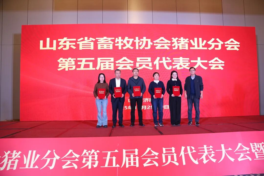 会议选举产生了山东省畜牧协会猪业分会第五届理事会成员单位,环山、禾邦、嘉大、山东温氏、山东牧原等28家企业当选为副会长单位,瑞东、青岛和瑞祥、潍坊德诚等12家企业当选为常务理事单位,临沂泽润、青岛友拓、山东蓝大等34家企业当选为理事单位。山东农业大学刘思当教授当选为山东省畜牧协会猪业分会第五届理事会会长,侯明权当选为秘书长,韩治军当选为常务副秘书长,山东省农科院畜牧兽医研究所研究员张玉玉、济南普士牧畜牧技术有限公司总经理商云领、山东海鼎农牧有限公司技术总监冯德永以及山东省畜牧协会的王燕男、李秀当选为副秘书长。随后,会议为各理事单位举行了授牌仪式。