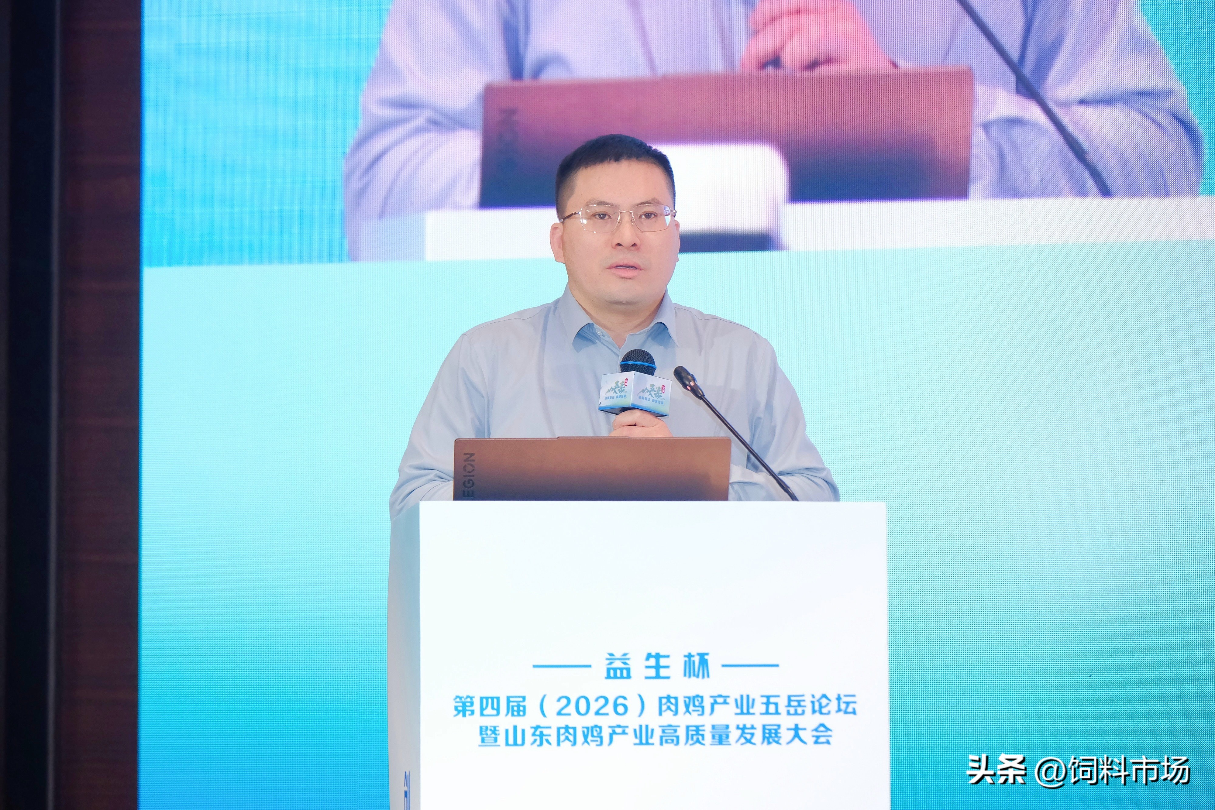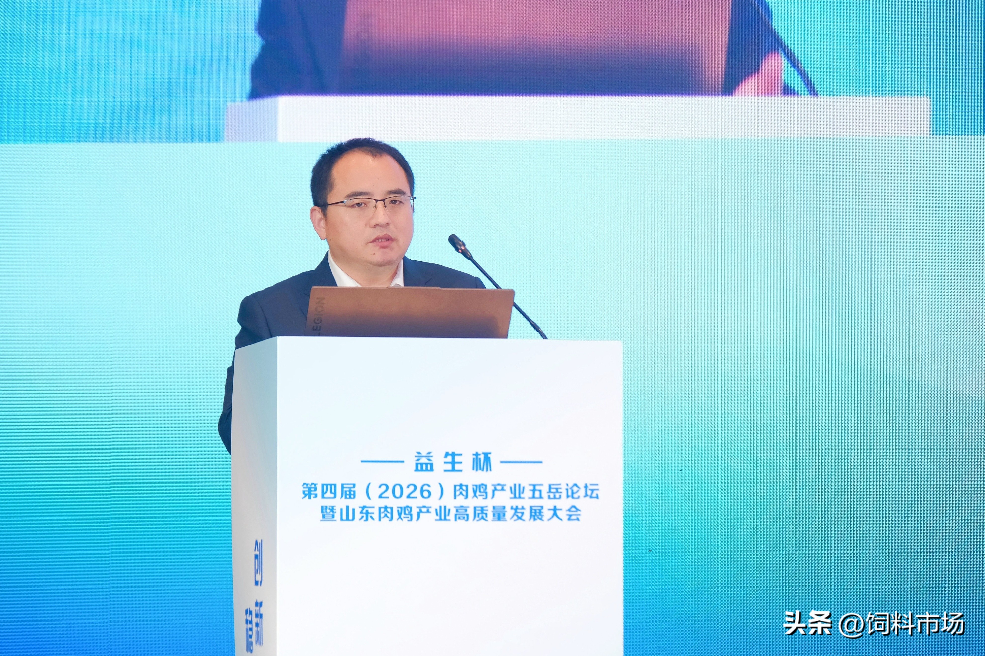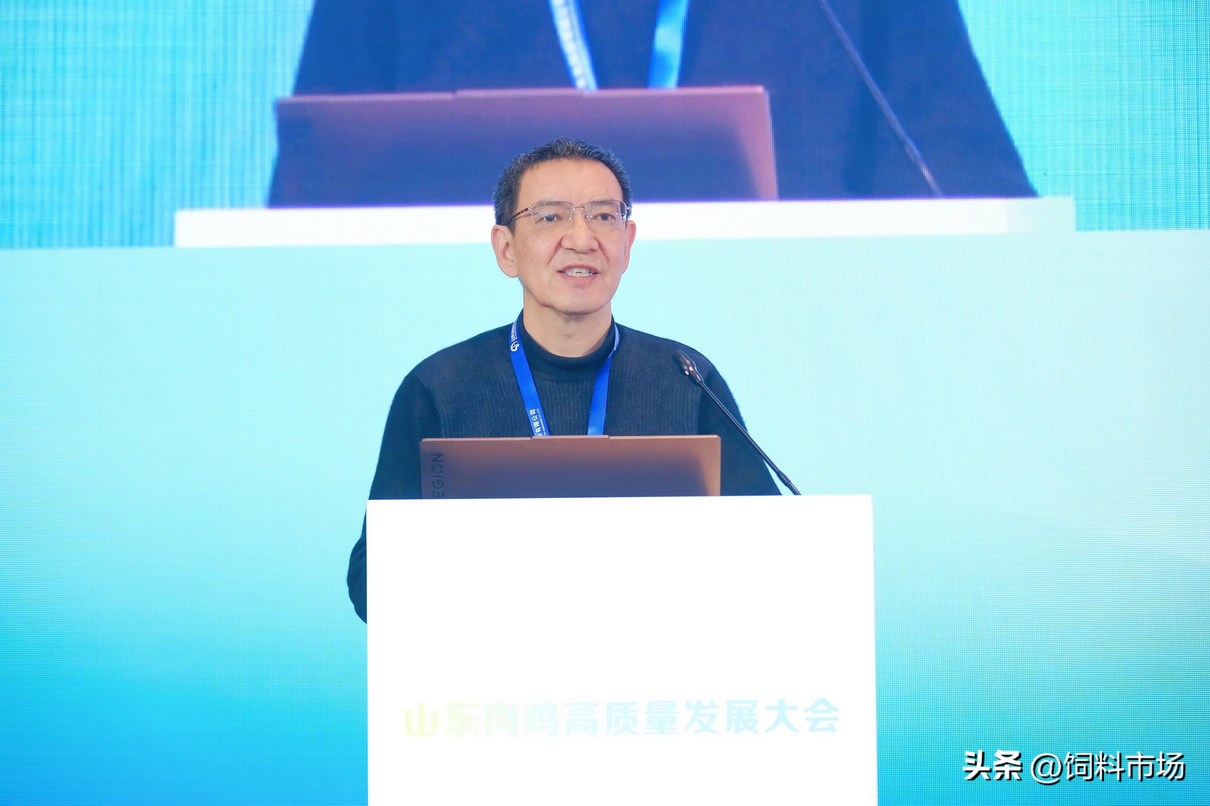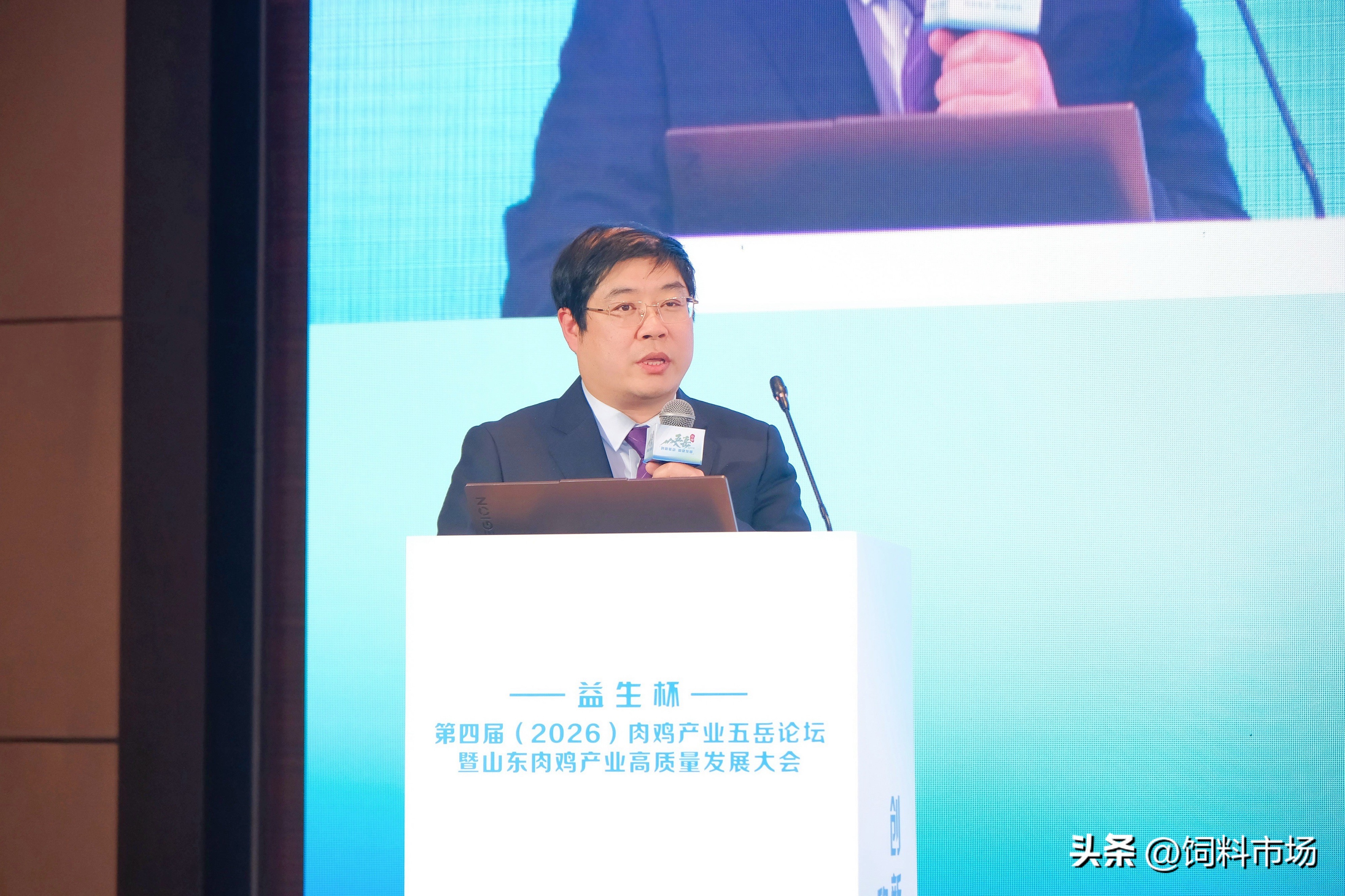 开幕式上,山东省畜牧协会会长、益生股份董事长曹积生发表致辞,他全面总结了山东肉鸡产业近年来的发展成效——2025年白羽肉鸡出栏97.5亿只,增长5.4%;加工宰杀92.86亿只,增长了6%;出栏量山东占了37%,宰杀量山东占了42.7%。从年份看,2019-2024年,猪肉消费占肉类的55%降到45%,禽肉由28%提高到37%。特别是山东,连续5年禽肉的消费超过了猪肉,去年辽宁也超过了,禽肉由原来的配角现在变成了核心引擎,拉动了整个肉类发展。他认为,肉鸡产业的增长来源于三大驱动力:第一个驱动力,《国家食品与营养纲要》已经明确提出来要扩大禽类的消费,提高禽肉的比例,已经列到了国家战略策略导向,政策很支持。第二个驱动力是最关键的,是消费驱动。消费驱动很简单:一是营养,二是价低,三是适应。营养“一高三低”,鸡肉高蛋白、低脂肪、低胆固醇、低能量现在已经深入人心,所以食用肉类的比例在大幅度地增长。第三个驱动力,首次出口量超过了进口。 展望2026年,白羽肉鸡“一紧两缺四破局”。“一紧”是什么?2025年白羽肉鸡的祖代进口量由2024年的71.15万套降到了2025年的61.76万套,降了13.5%,2026年一季度现在还没有进口的迹象,祖代鸡进口量少了很多。全国进口祖代鸡有13个祖代场,益生股份进口了26.6万套,占43.05%,后面的种鸡需求量比较紧。“两缺”,一缺好鸡苗。整个进口鸡苗的祖代少了,父母代就会少,鸡苗就会少,所有的鸡苗可能不会缺,但是进口鸡苗量比较缺,进口总鸡苗会缺点。第二个缺,据统计数据看,2026年宰杀规模比原来增加了14个亿,宰杀的规模大了,养殖供应有缺少,会出现缺鸡的现象。