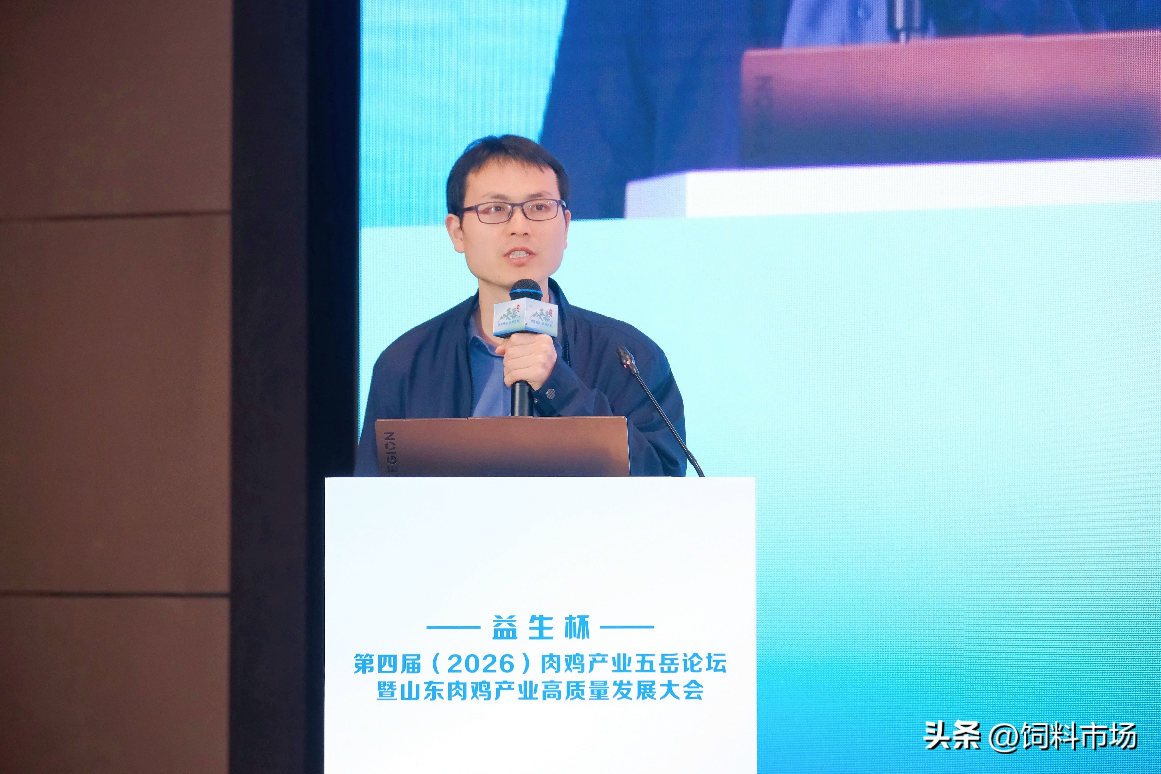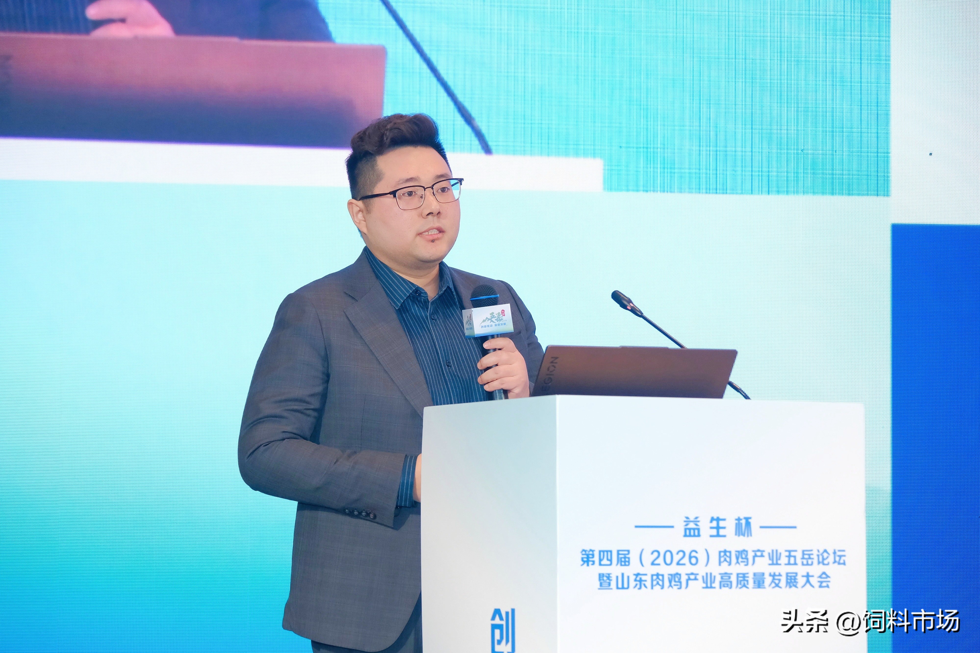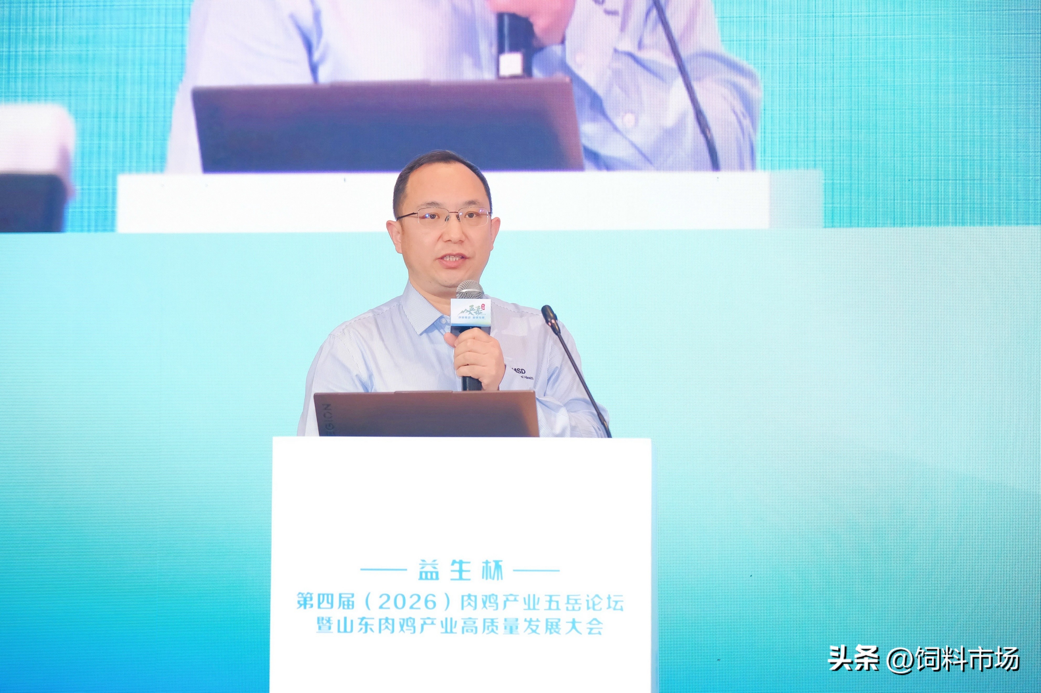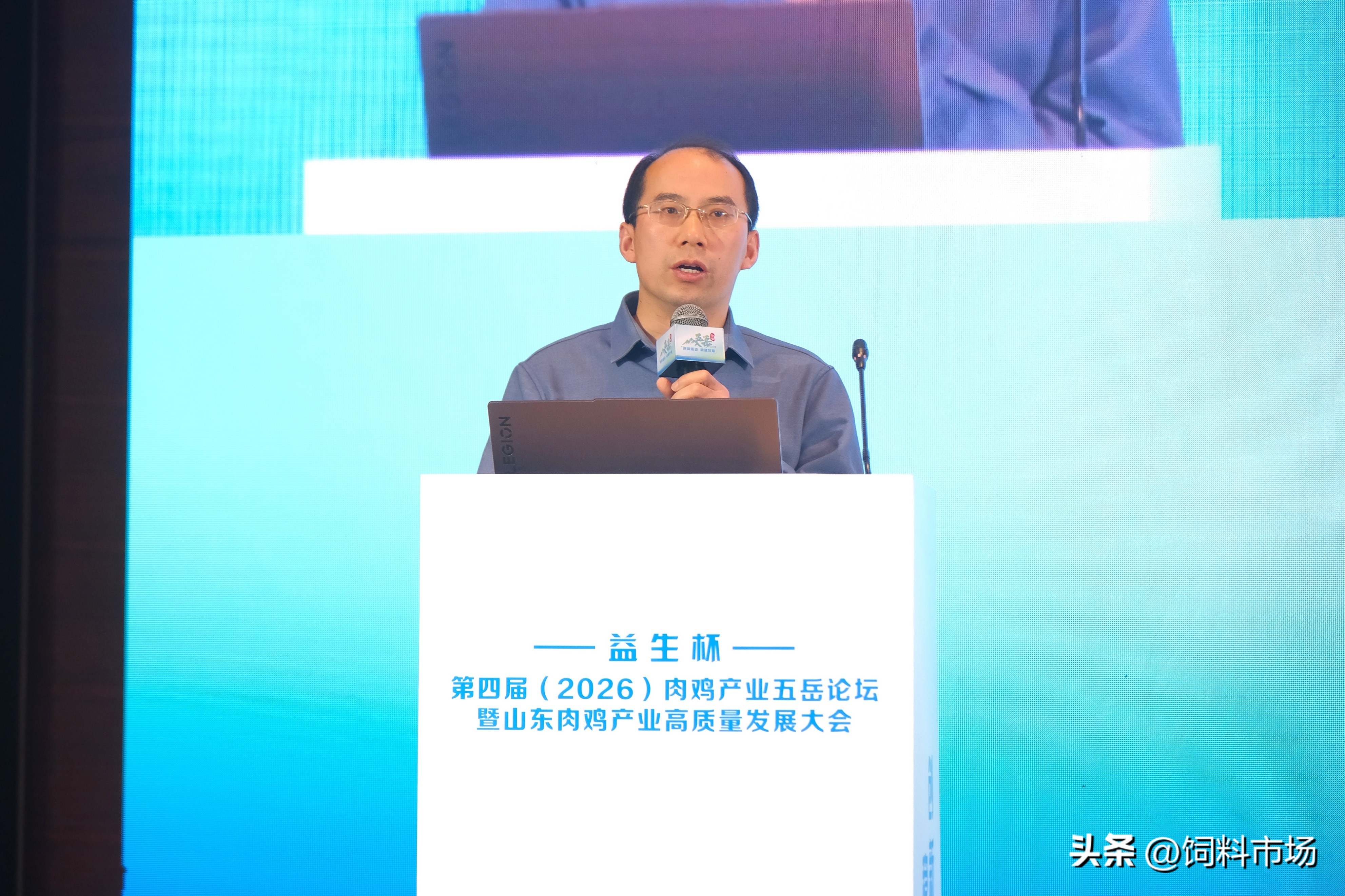 开幕式上,山东省畜牧协会会长、益生股份董事长曹积生发表致辞,他全面总结了山东肉鸡产业近年来的发展成效——2025年白羽肉鸡出栏97.5亿只,增长5.4%;加工宰杀92.86亿只,增长了6%;出栏量山东占了37%,宰杀量山东占了42.7%。从年份看,2019-2024年,猪肉消费占肉类的55%降到45%,禽肉由28%提高到37%。特别是山东,连续5年禽肉的消费超过了猪肉,去年辽宁也超过了,禽肉由原来的配角现在变成了核心引擎,拉动了整个肉类发展。他认为,肉鸡产业的增长来源于三大驱动力:第一个驱动力,《国家食品与营养纲要》已经明确提出来要扩大禽类的消费,提高禽肉的比例,已经列到了国家战略策略导向,政策很支持。第二个驱动力是最关键的,是消费驱动。消费驱动很简单:一是营养,二是价低,三是适应。营养“一高三低”,鸡肉高蛋白、低脂肪、低胆固醇、低能量现在已经深入人心,所以食用肉类的比例在大幅度地增长。第三个驱动力,首次出口量超过了进口。 展望2026年,白羽肉鸡“一紧两缺四破局”。“一紧”是什么?2025年白羽肉鸡的祖代进口量由2024年的71.15万套降到了2025年的61.76万套,降了13.5%,2026年一季度现在还没有进口的迹象,祖代鸡进口量少了很多。全国进口祖代鸡有13个祖代场,益生股份进口了26.6万套,占43.05%,后面的种鸡需求量比较紧。“两缺”,一缺好鸡苗。整个进口鸡苗的祖代少了,父母代就会少,鸡苗就会少,所有的鸡苗可能不会缺,但是进口鸡苗量比较缺,进口总鸡苗会缺点。第二个缺,据统计数据看,2026年宰杀规模比原来增加了14个亿,宰杀的规模大了,养殖供应有缺少,会出现缺鸡的现象。