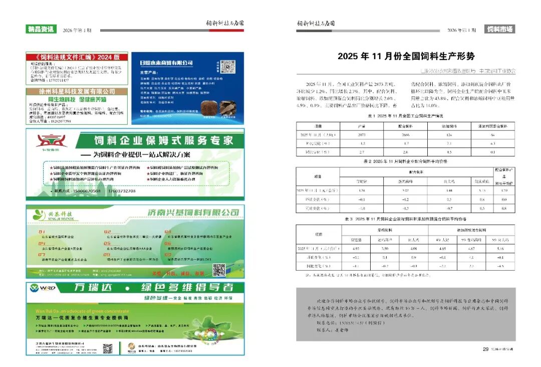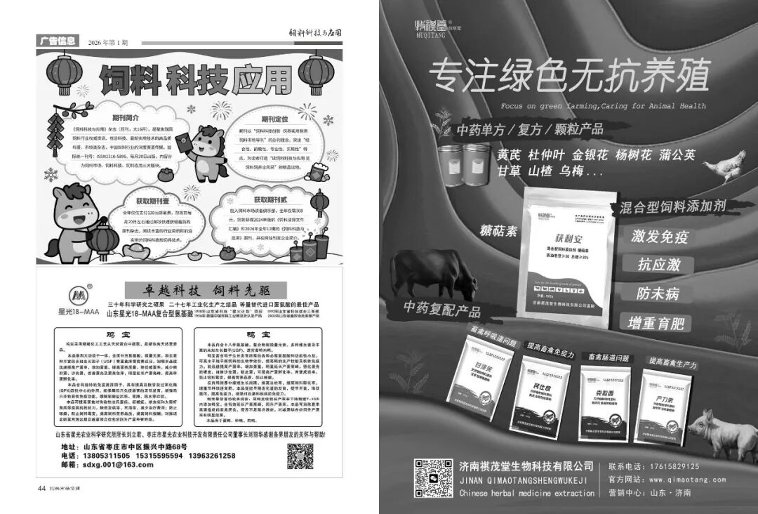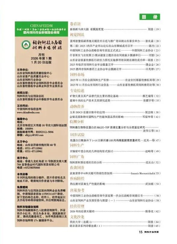 先睹为快:2026年第1期《饲料科技与应用》即将出版,现将部分内容摘要发布