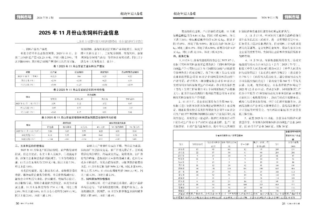 2026年第1期饲料市场版块文章摘要