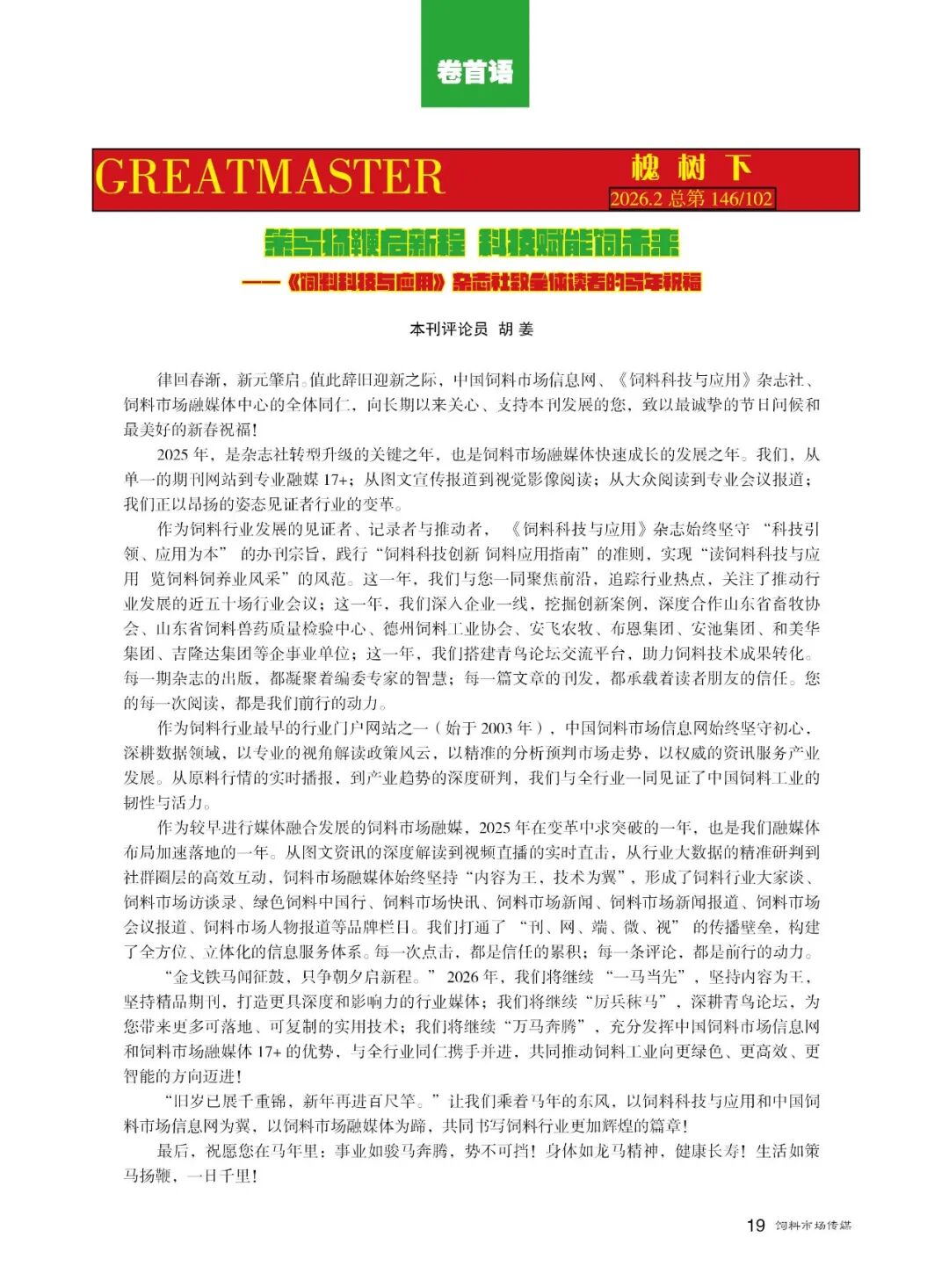 你们好!《饲料科技与应用》2026年第2期电子期刊即将已上线。纸质期刊也将于1月25日通过邮政快递邮发各位读者,请查收为盼。