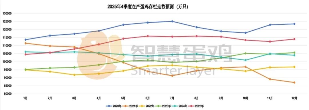 根据鲜蛋供给水平和鲜蛋的季节性消费需求特点,参照蛋鸡市场历史规律,2025年四季度平均蛋价预计在成本线以下,蛋鸡市场将呈现持续亏损走势;2025年全年平均斤蛋盈利在-0.30元/斤上下,呈现小年特征。
