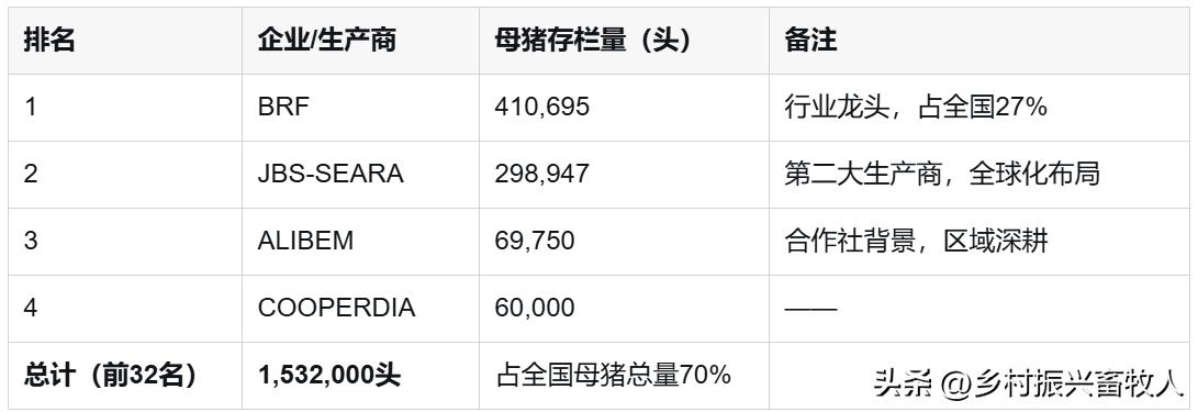 合作社(29%):多为区域性联合生产,如COOPERDIA(6万头母猪)、COOPERATIVA A1(5.7万头);