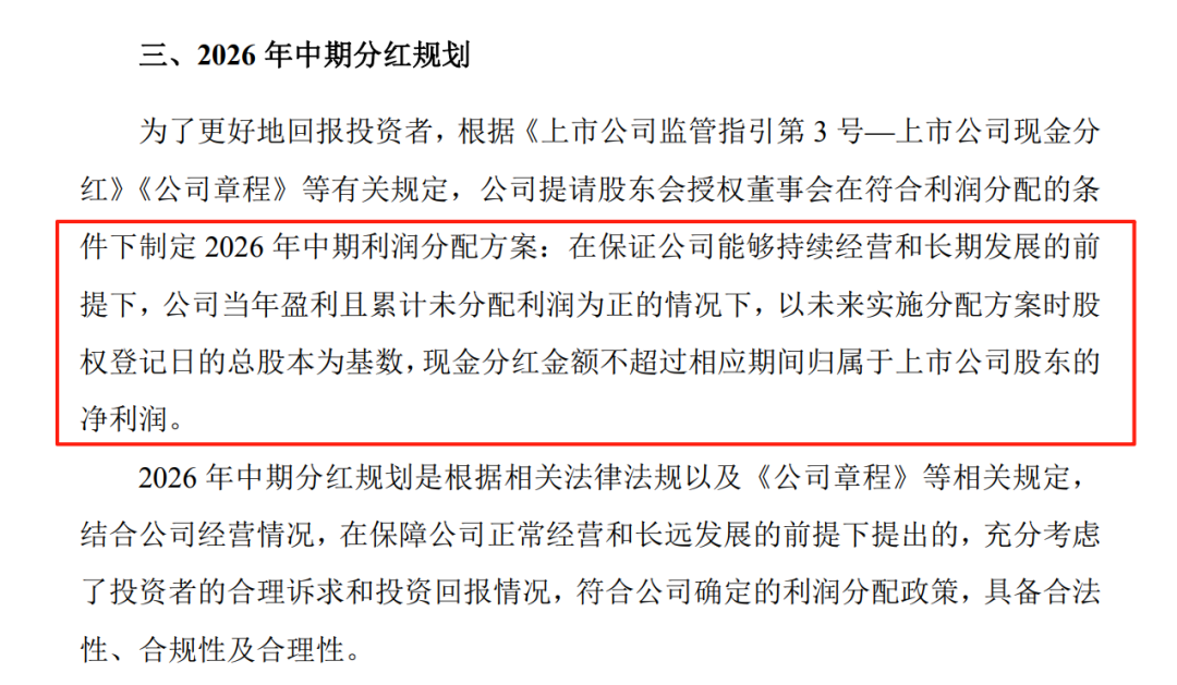 牧原股份提请股东大会授权董事会,在2026年当年盈利且累计未分配利润为正的情况下,制定中期利润分配方案。规划明确,现金分红金额将不超过相应期间归属于上市公司股东的净利润。这一举措意味着,如果2026年公司经营持续向好,股东有望在年中再次获得真金白银的回报。