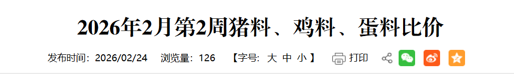 2026年2月第2周全国猪料比价为4.79,环比下跌3.04%。按目前价格及成本推算,未来仔猪育肥模式的生猪养殖头均亏损缩减至134.06元。